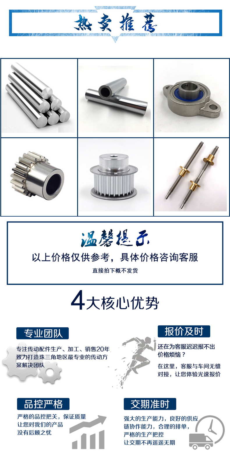 2、鏈輪結構,小直徑鏈輪一般做成整體式,中等直徑鏈輪多做成輻板式,為便于搬運、裝卡和減重,在輻板上開孔,大直徑鏈輪可做成組合式,此時齒圈與輪芯可用不同材料制造!例如C45,不銹鋼等材料。