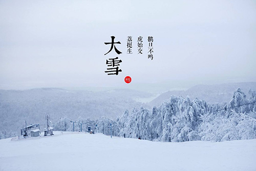 大雪時節有三候:"一候鹖鴠不鳴"意思是大雪交節之后,天氣寒冷,鹖鴠這種鳥便斂息摒聲,不再鳴叫。"二候虎始交"意識是此時是陰氣最盛時期,但盛極而衰,陽氣已有所萌動,老虎開始有求偶行為。"三候荔挺出"意思是"荔挺"是蘭草的一種,形式蒲草而較小,也感到陽氣的萌動而抽出新芽。